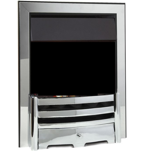 A Modern polished Chrome heavy cast iron fret and ash pan, matching brushed steel 3 piece lightweight trim for gas fires, its supplied with magnets to secure to your fire
