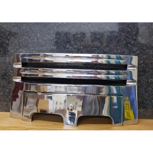 A polished Chrome heavy cast fret, its suitable for gas and electric fires